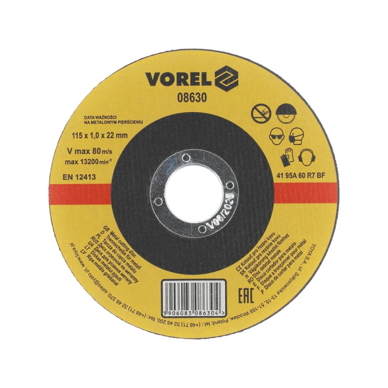 Ο VOREL Δίσκος Κοπής Μετάλλου 08630 είναι σχεδιασμένος για αποδοτική και αποτελεσματική κοπή μετάλλου. Κατασκευασμένος από ηλεκτροκορούνδιο, αυτοί οι ενισχυμένοι, επίπεδοι δίσκοι διαθέτουν μεσαίο κόκκο και υψηλή σκληρότητα, εξασφαλίζοντας αντοχή και υψηλή απόδοση.