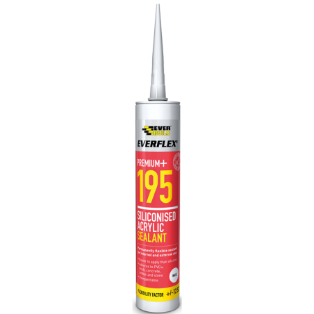 Το Everflex Premium + 195 Siliconized Acrylic Sealant είναι ένα υψηλής ποιότητας στεγανωτικό που παραμένει εξαιρετικά ευέλικτο και μπορεί να χρησιμοποιηθεί σε μια μεγάλη ποικιλία εφαρμογών στεγανοποίησης τόσο εσωτερικά όσο και εξωτερικά.