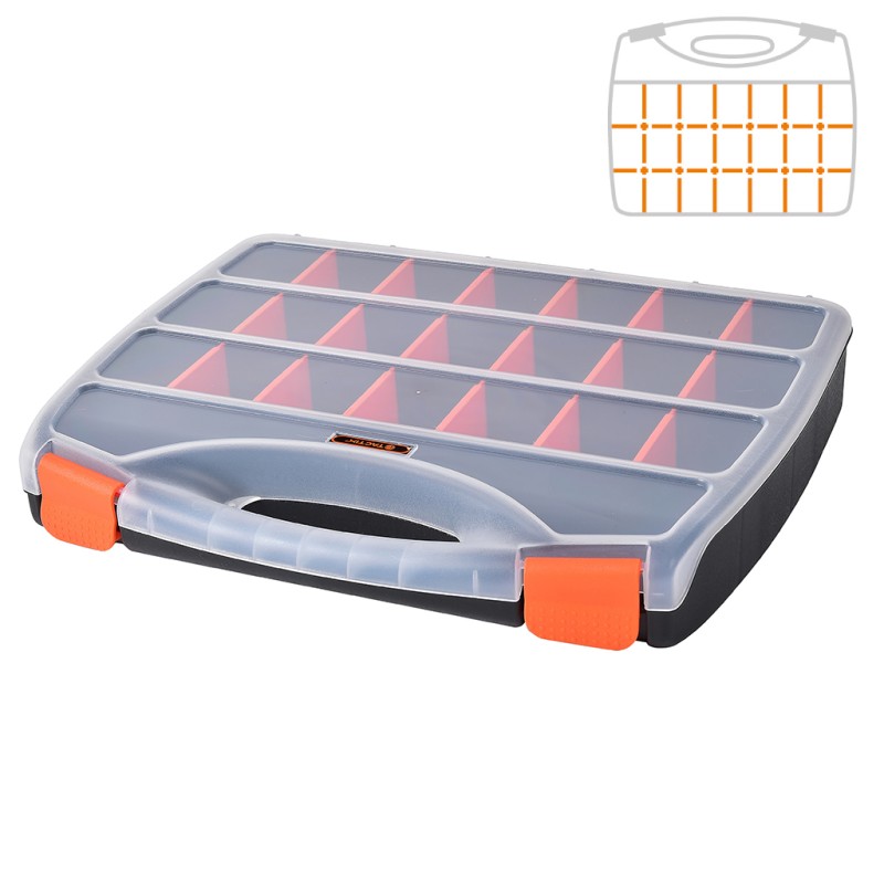 25.5W x 21D x 4H cm 18 compartments Removable dividers