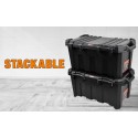 Dimensions: 56.2W x 37.4D x 41.2H cm (22 x 14-3/4 x 16-1/4 in.) Durable structural foam toolbox Lid with integrated weather‑proof seal Removable lift‑out carry tray Telescopic handle Large rubber‑coated wheels