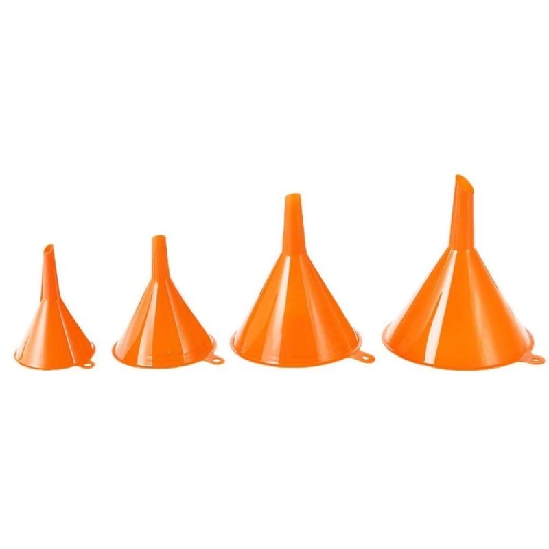 Plastic funnel 4 sizes wide mouth open orange for car oil / LPG / liquids.