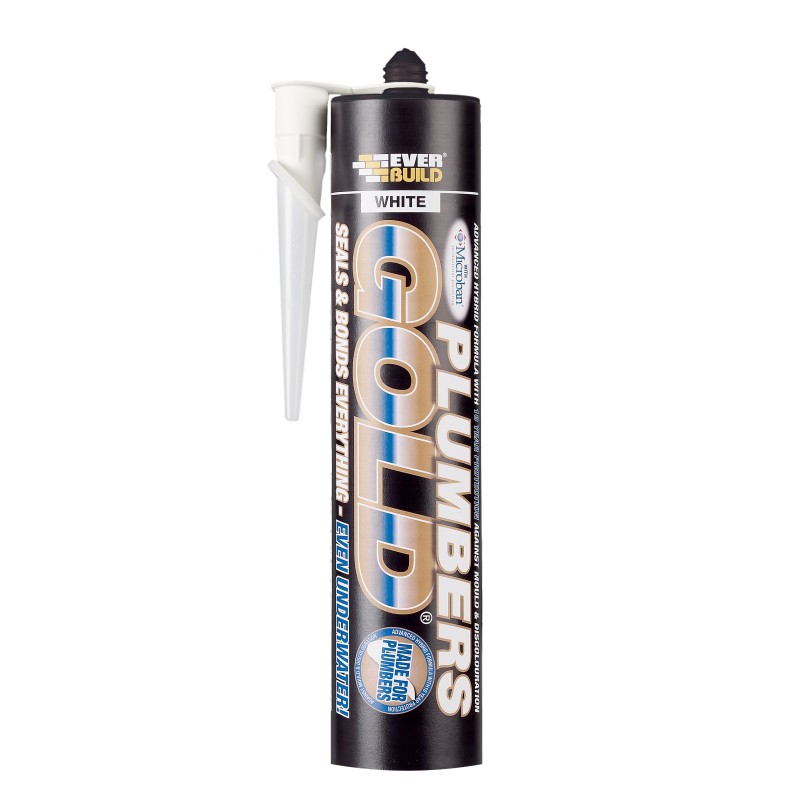 Plumbers Gold is a new type of sealant and adhesive based on hybrid polymer technology that offers outstanding adhesion to all sanitary, bathroom, wet room, kitchen and plumbing materials.