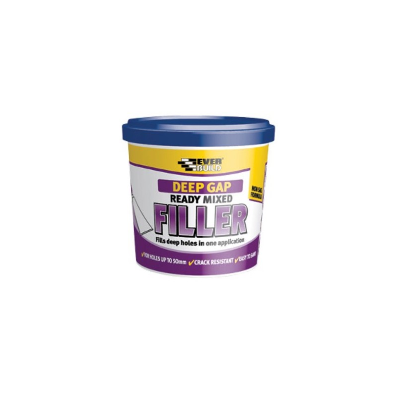 Deep Gap Filler is a revolutionary new filler, formulated using ceramic spheres that fill most holes and cracks; especially deep holes up to 50mm, in just one quick application with no need for secondary filling to level off. Deep Gap Filler will not shrink, sag or crack and dries to a light grey finish. Deep Gap Filler finishes smooth, requiring little or no sanding and can be ready to paint or wallpaper in just 30 minutes. It can be used for repairs to wood, plaster, masonry, cement, stone, brick and rendering.